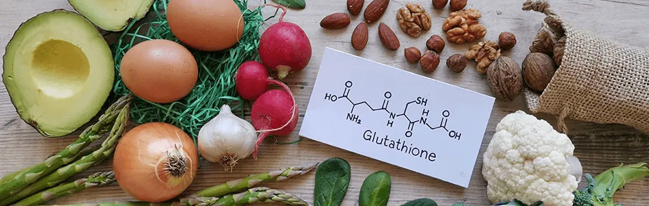 Glutation je supstanca sastavljena od aminokiselina glicina, cisteina i glutaminske kiseline. Proizvodi se u jetri i ima ulogu u mnogim tjelesnim procesima. Iako tijelo može sintetizirati glutation, neki faktori mogu smanjiti proizvodnju ovog osnovnog antioksidansa ili povećati potrebu za njim. Među tim faktorima su starenje, neadekvatna ishrana, stres, zagađenje i određena medicinska stanja. Kako bi se povećao nivo glutationa, ljudi mogu konzumirati namirnice bogate aminokiselinama potrebnim za njegovu sintezu (na primjer brokoli, šparoge, bijeli luk, luk, povrće iz porodice kupusnjača).